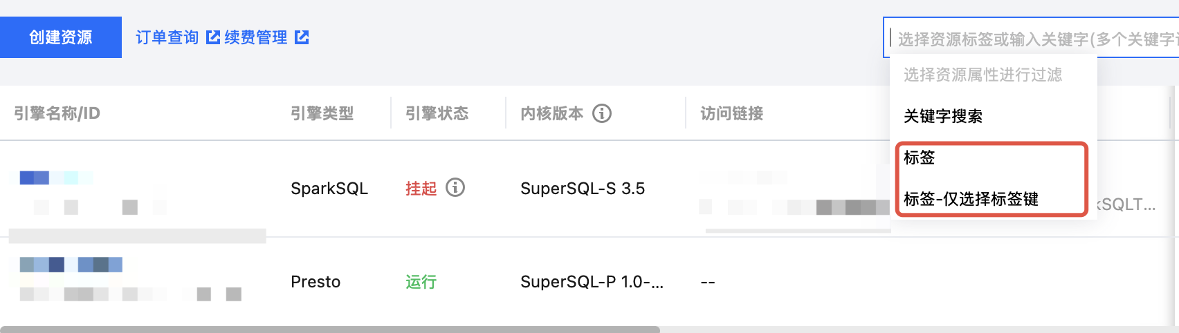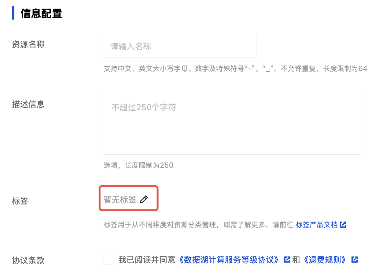 用户可以在购买独享引擎资源时绑定标签,包年包月、按量付费模式下均支持标签的绑定。