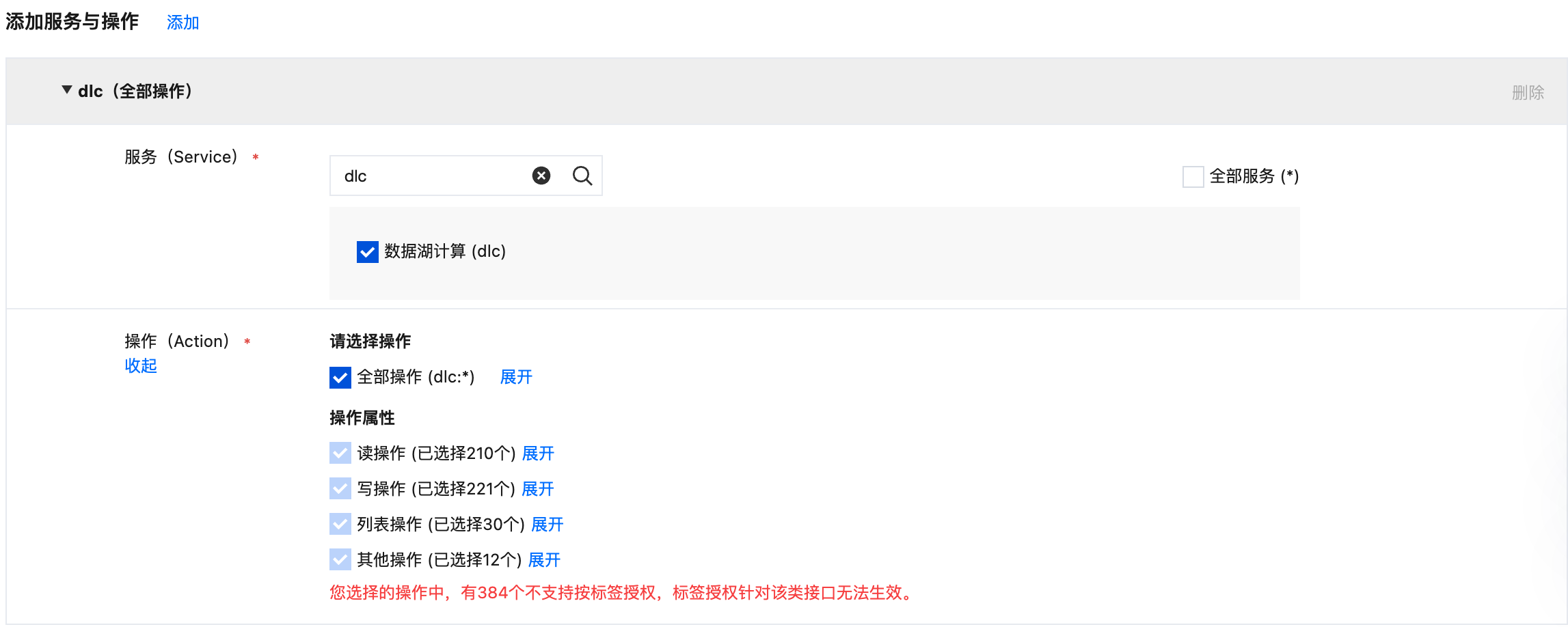 添加 DLC 服务策略 QcloudDLCFullAccess