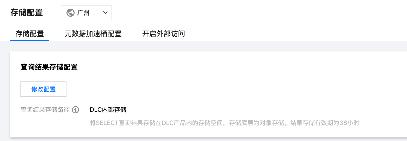 1. DLC 内部存储:将 SELECT 查询结果存储在 DLC 产品内的存储空间,存储底层为对象存储。结果存储有效期为36小时。