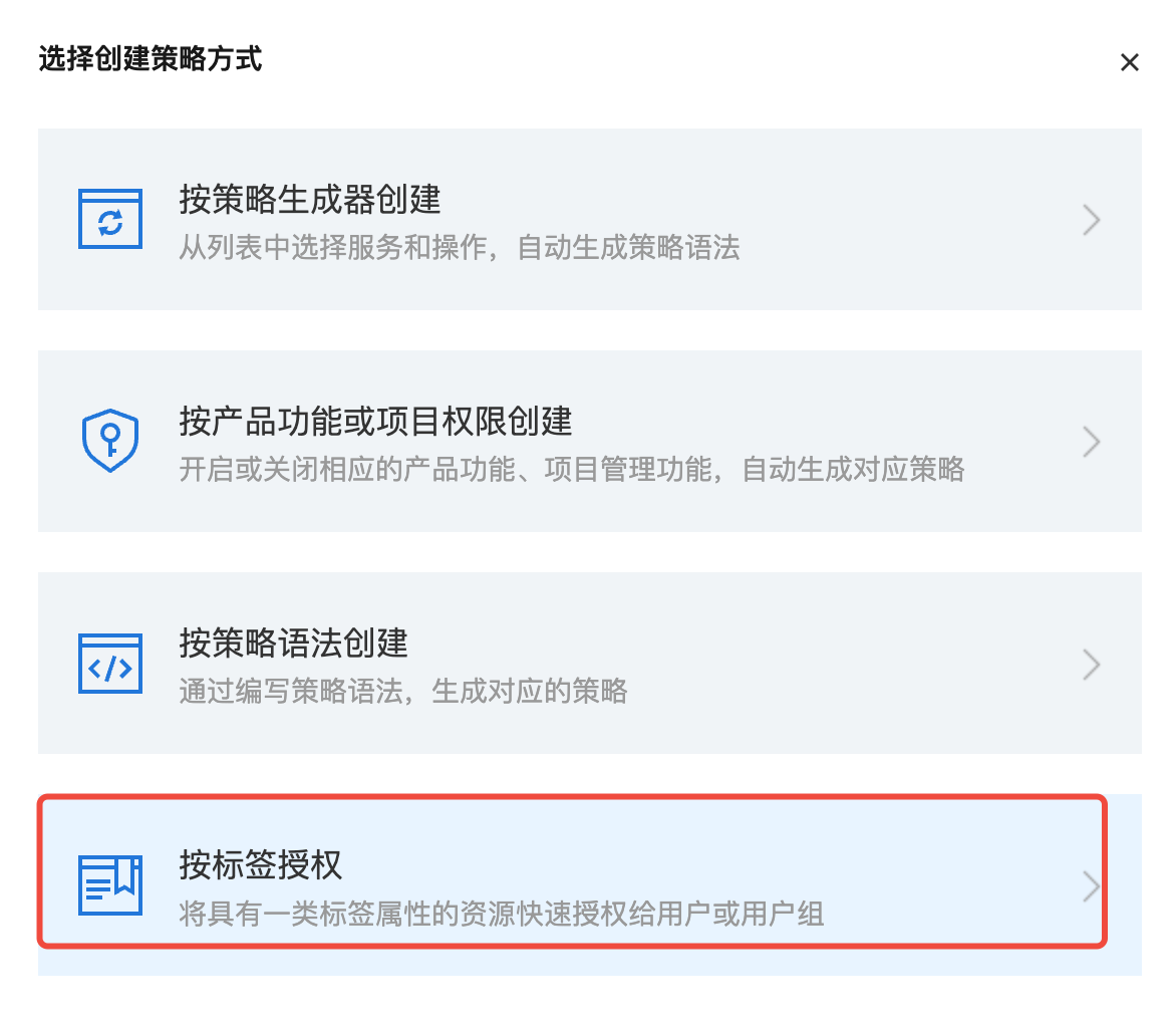 2. 单击创建自定义策略,在弹出对话框选择按标签创建。