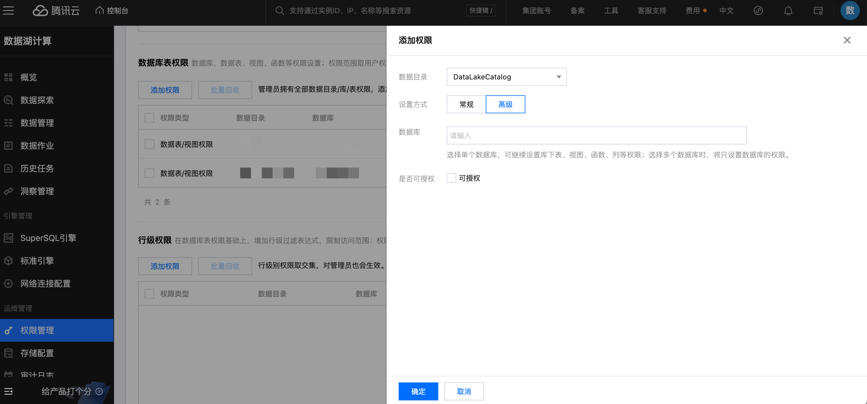 库表高级权限设置