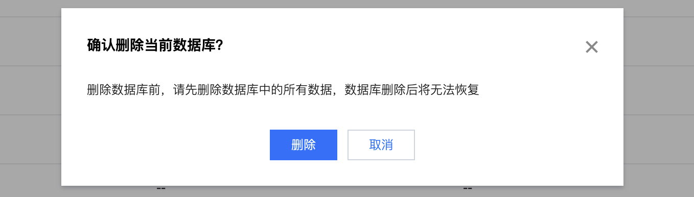 2. 进入 数据管理,单击删除,二次确认后即可将数据库删除。