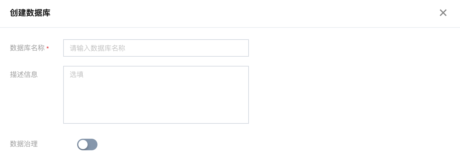 2. 进入数据管理,单击数据目录下的目录名称,查看该目录下的数据库。 4. 填写数据库相关信息后保存,即可完成数据库新建。创建数据库时可以对整库开启数据优化。 数据库名称:全局唯一,支持英文大小写、数字、“_”,不允许数字开头,最多128个字符。