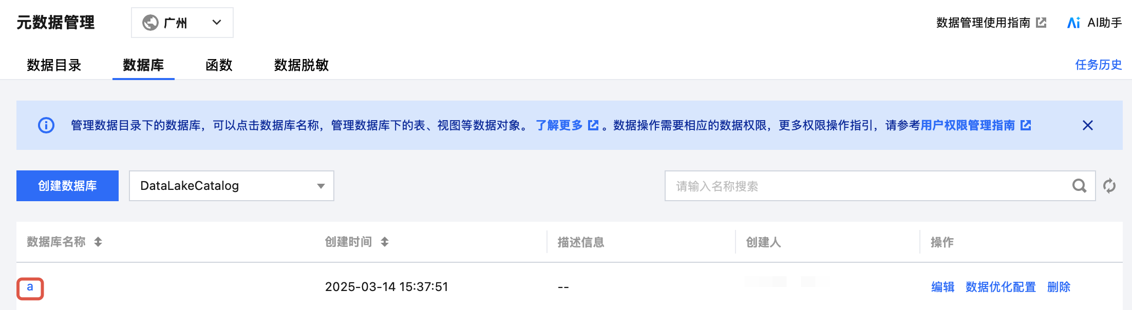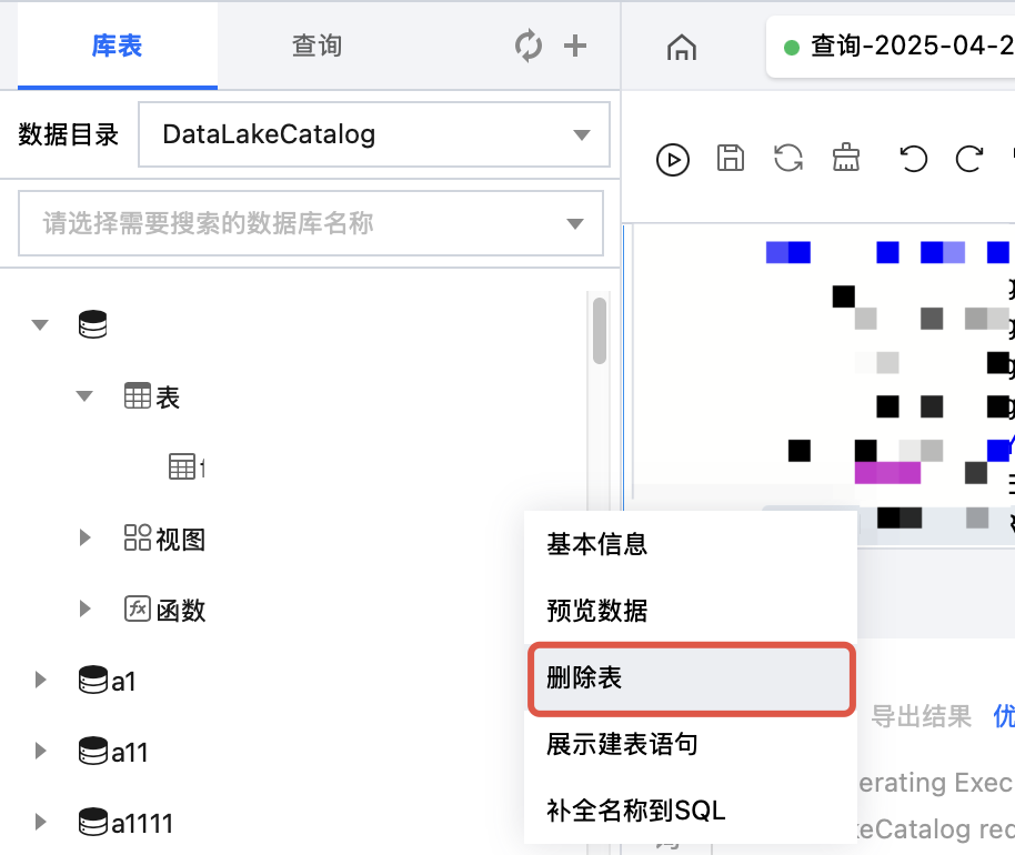 删除DataLakeCatalog目录下的数据表,将会清空所有该数据表数据,请谨慎操作。
