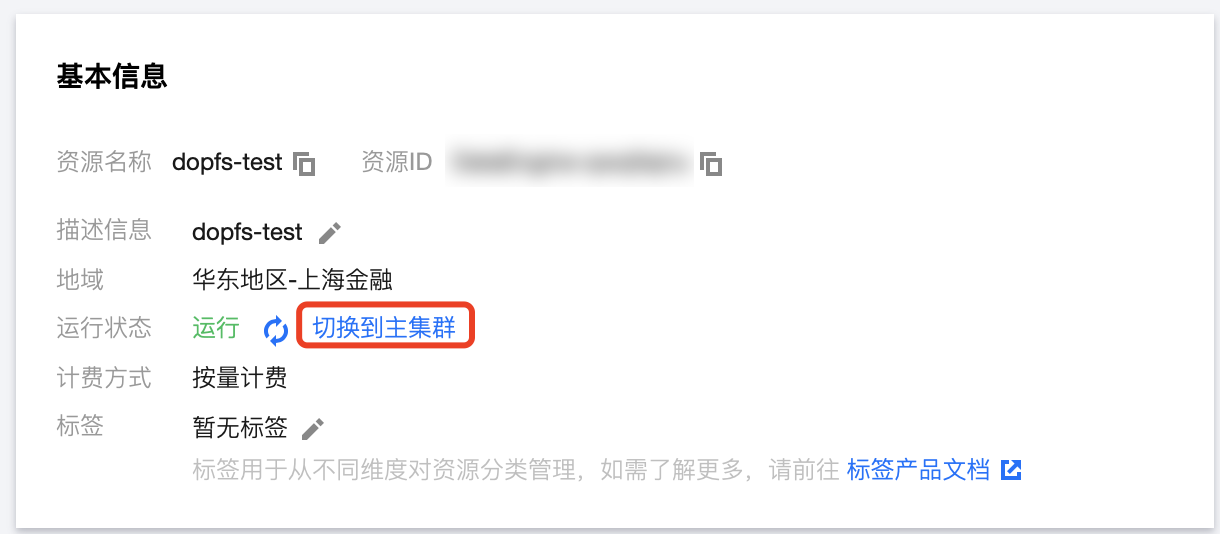 5. 极端故障解决后,在数据引擎基本信息中,单击切换到主集群,容灾集群将会挂起,往后指向该数据引擎的作业都会提交到主集群。
