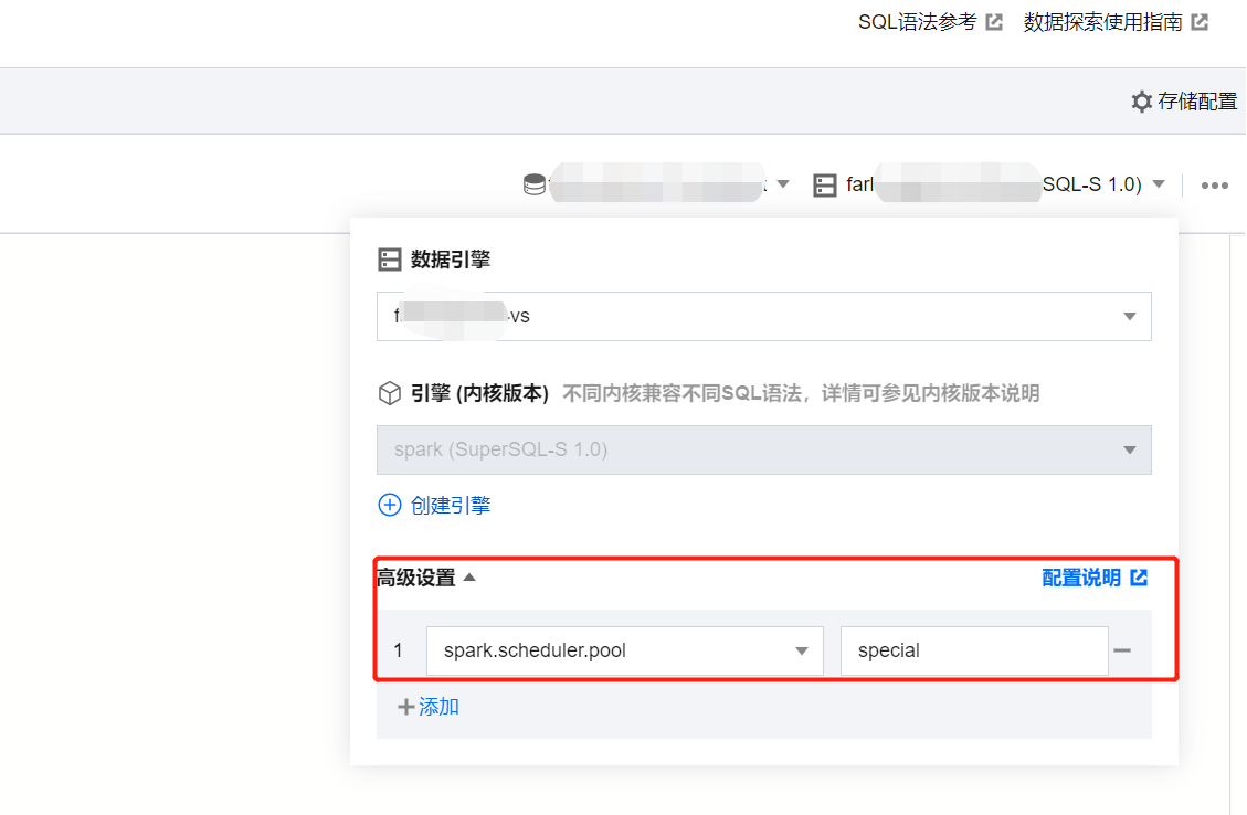 3. 在任务提交时,指定以下参数作为任务参数。spark.scheduler.pool = 要提交到的调度池 name。如果是 default 调度池,可以不指定。