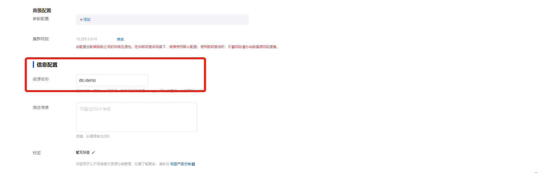 数据引擎 | 选择 创建资源 步骤创建的 dlc-demo 计算引擎 |