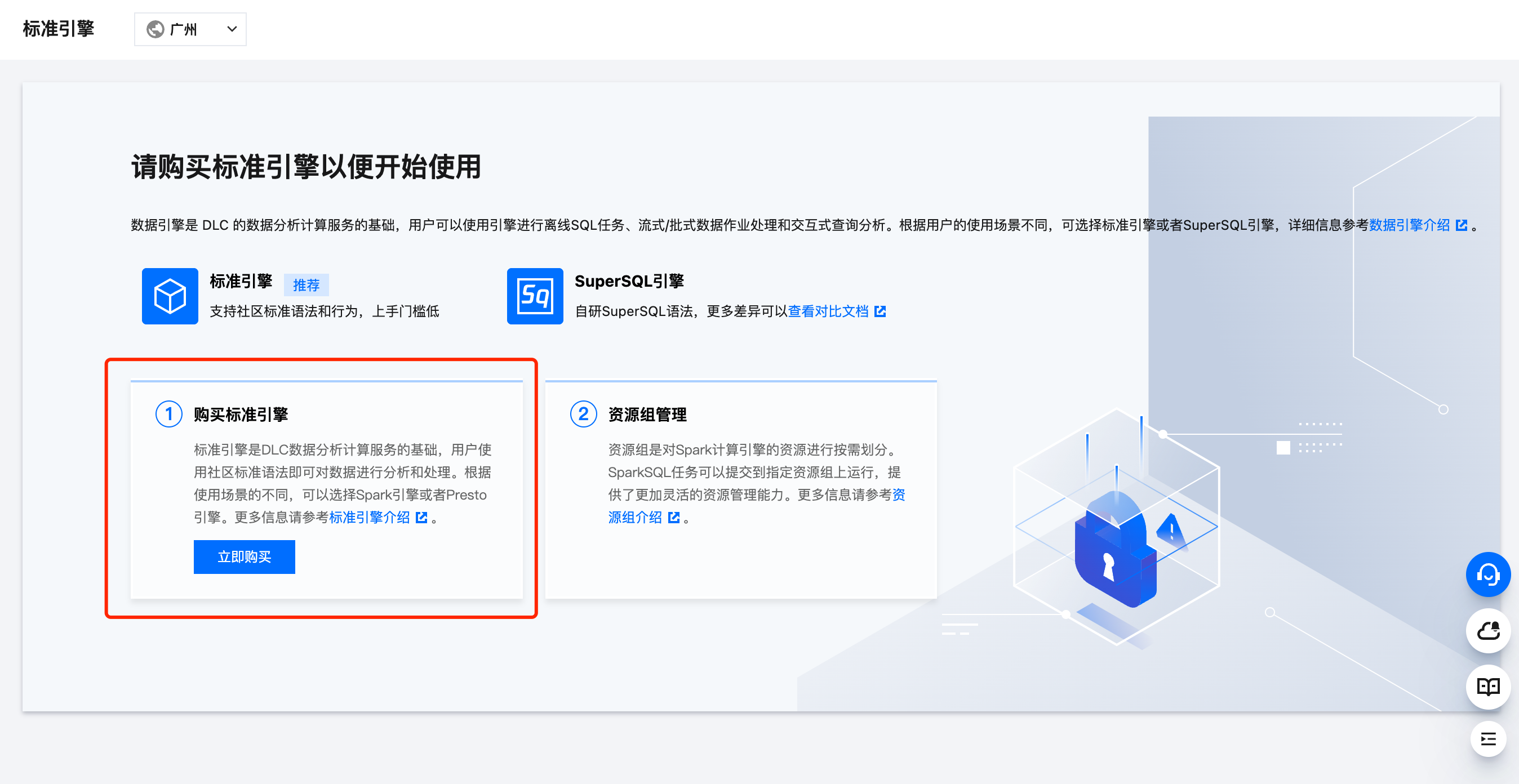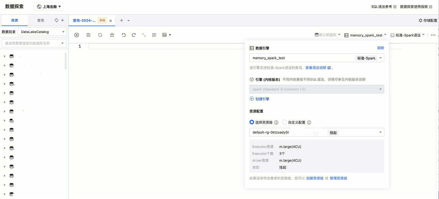 在完成标准引擎的购买与配置后,您即可在 DLC 数据探索中使用标准引擎,此外针对 Spark 标准引擎,如果有多租户或任务隔离需求,您另可在配置用于资源分配与隔离的标准引擎资源组,具体指引如下: