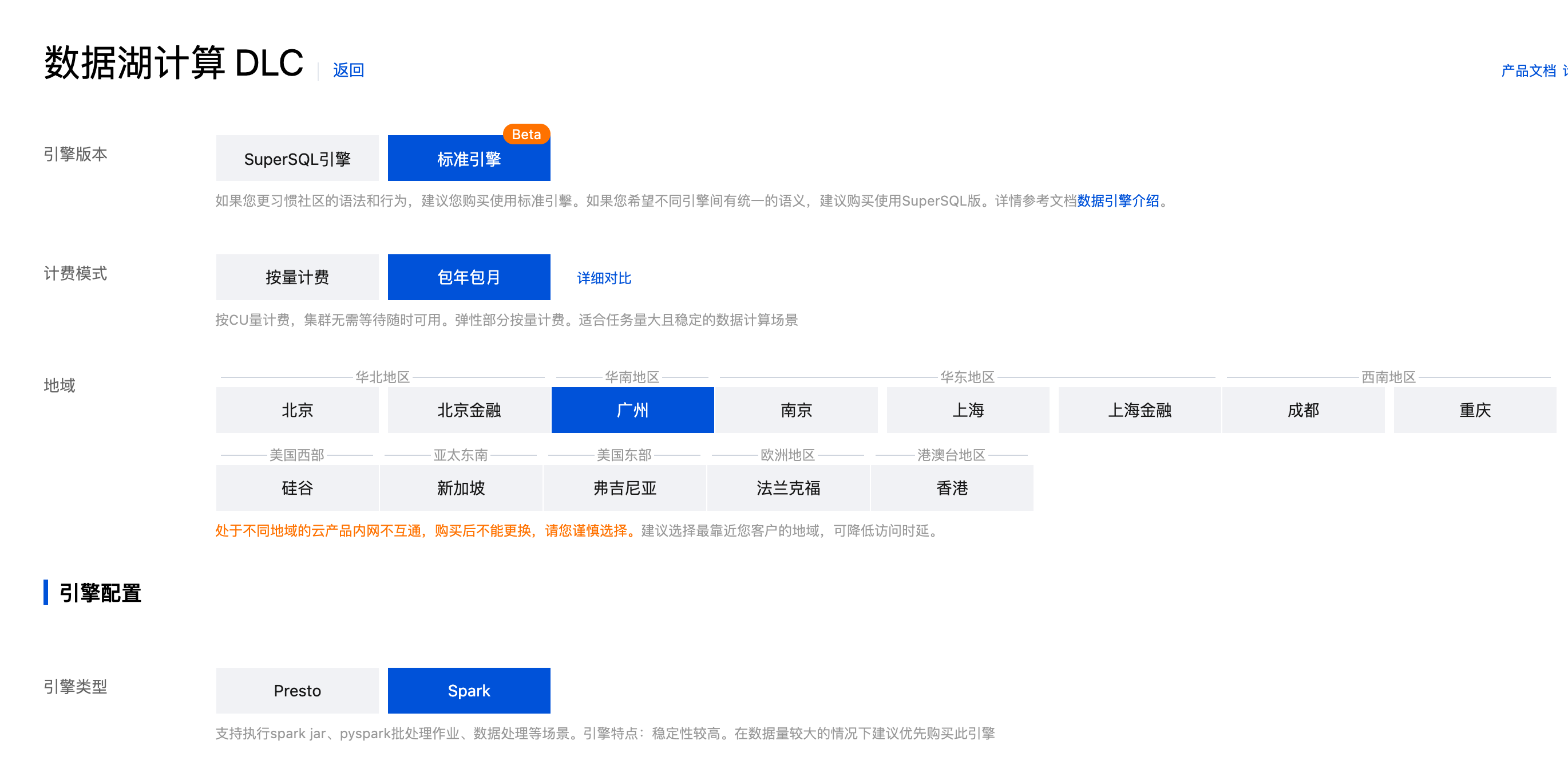 SQL/批任务场景建议购买对应类型引擎 | 1.希望使用 Spark + Presto 统一语法。 2.需要使用联邦查询。 |