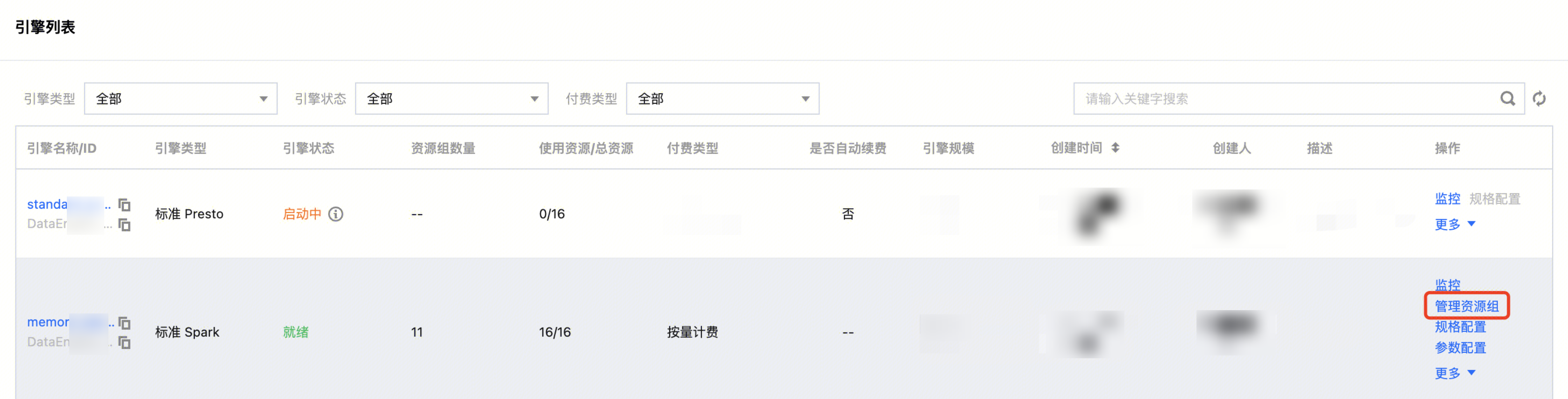引擎与资源组为一对多关系,例如,引擎 A 下,可以有若干个资源组。