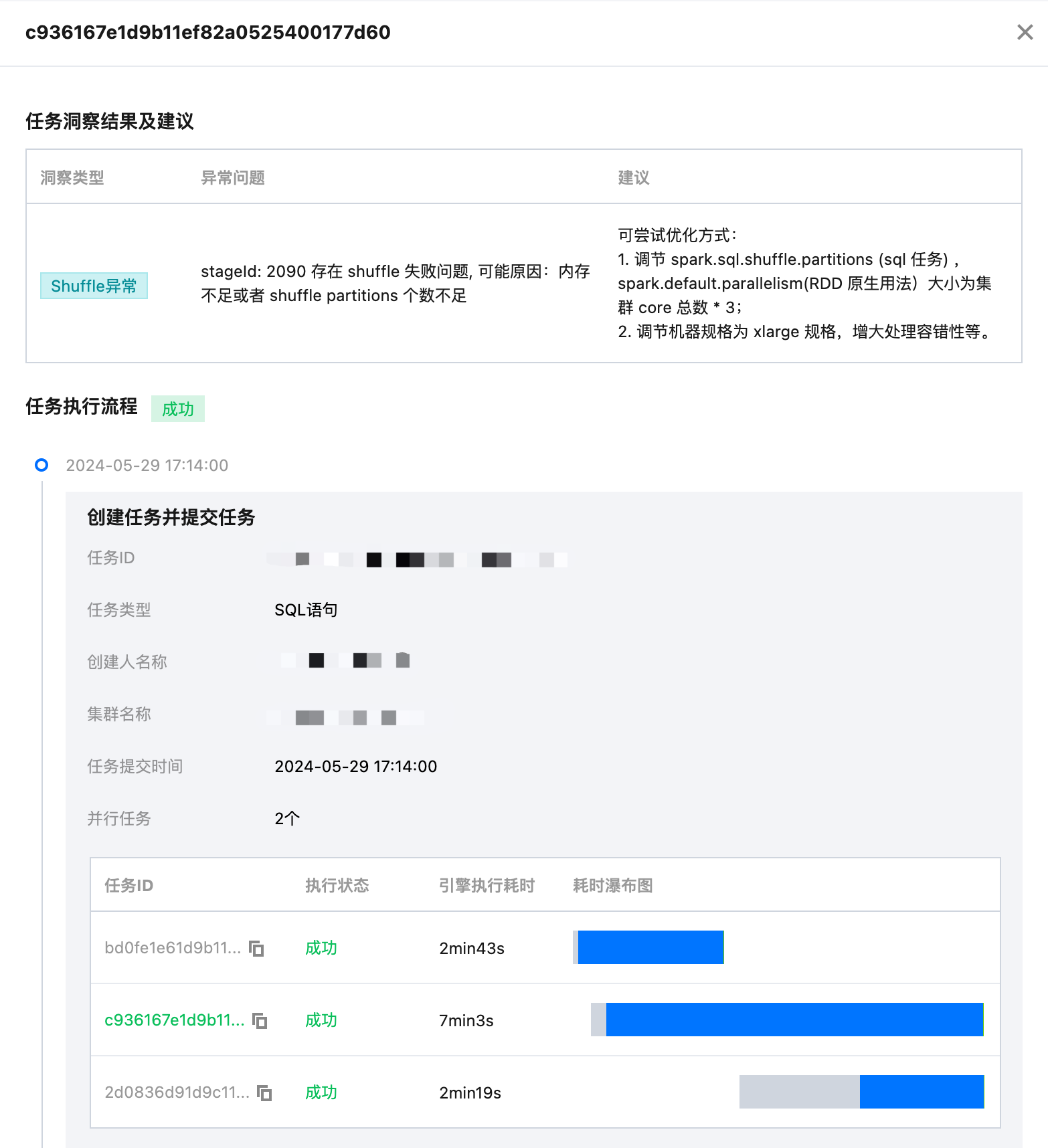 根据当前任务的实际执行情况,DLC 任务洞察将结合数据分析及算法规则,给出相应的调优建议。