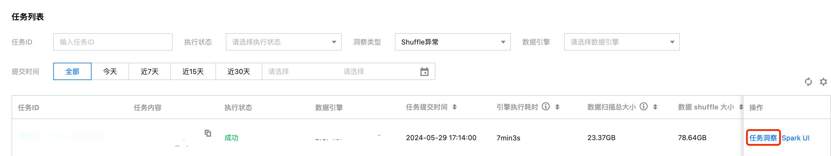 当任务执行完成后,用户只需要确认需要洞察的任务,在操作栏点击“任务洞察”即可查看。
