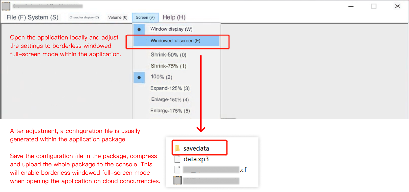 有些应用可以在设置中调整显示模式,将调整后生成的配置文件一同打包上传至控制台即可。