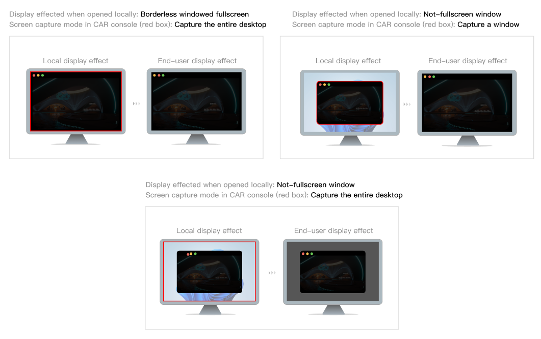 云渲染的 自适应分辨率 功能是通过修改“云端桌面分辨率”来实现的。然而,应用独占全屏时,显示器分辨率是由应用控制的,此时强行修改桌面分辨率可能导致应用崩溃。 如何区分无边框全屏和独占全屏