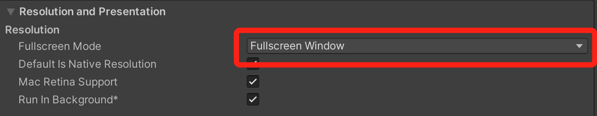 或者增加应用启动参数 -screen-fullscreen 1,Unity 应用参数参考 文档。 注意: