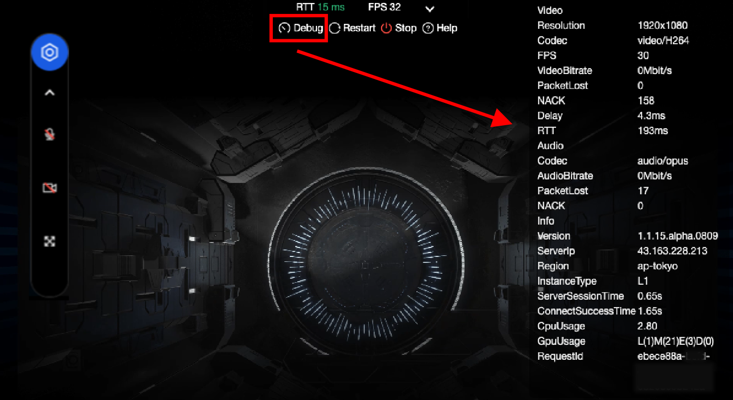 FPS(帧率):正常情况下帧率应保持在30以上。如您发现进入某些特定场景,或进行特定操作时,帧率突然下降,可能是因为此时对 GPU 算力的消耗突然增加,而目前规格的并发带不动,从而导致掉帧,建议您尝试更高规格的并发。