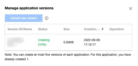 5. 提交后应用版本将被立即创建,上传进度可在应用版本管理中查看。