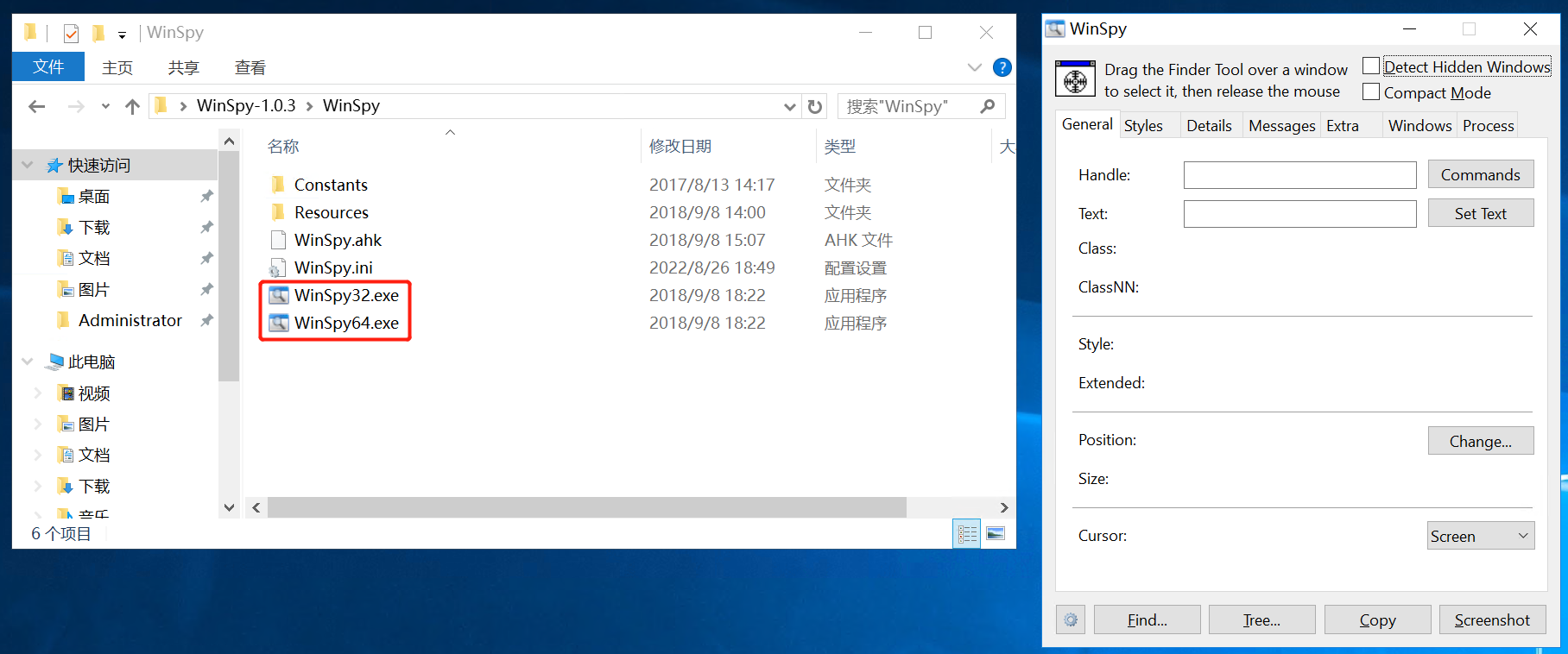 2. 解压 WinSpy,后根据系统类型打开 WinSpy32.exe 或者 WinSpy64.exe,如下图所示: