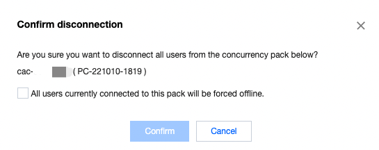 。比如某并发包显示使用中并发数为20,断开用户连接后将恢复为0。