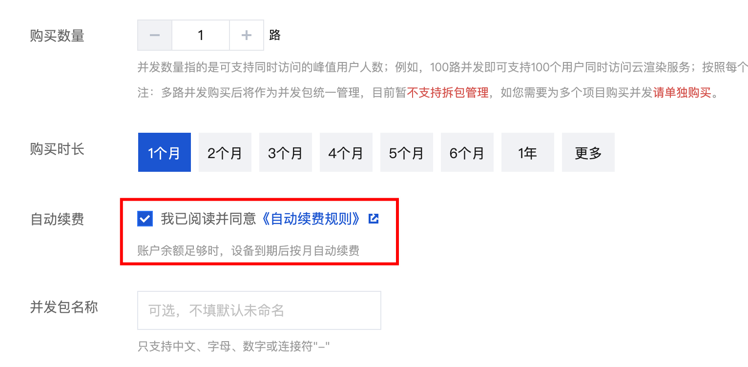 扣费金额:根据您所选择的应用云渲染并发规格进行计算,实际金额请以控制台为准。