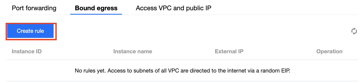 1.1 在实例配置页面的出口绑定页签下,单击新建规则。