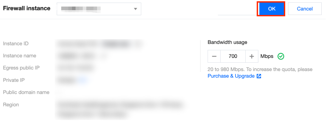 这里升级扩容如果只扩容带宽,这个带宽指的是互联网边界带宽,也可以理解为云防火墙的总带宽。