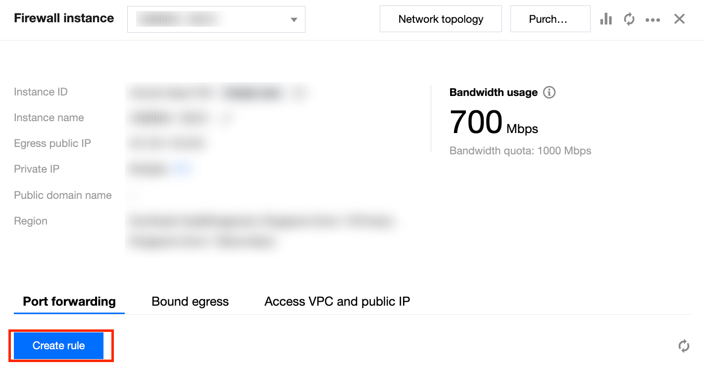 用户可在拥有 VPC 的所有国内地域(支持中国香港地域)中进行地域选择,同地域下可创建多个防火墙实例,但总带宽不能超过限定规格。