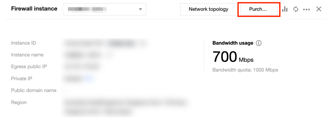 2. 在防火墙实例页面,单击右上角的升级扩容。