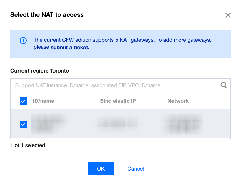 复选框:默认已点选用户当前NAT防火墙实例已经接入的 NAT 网关并无法取消。