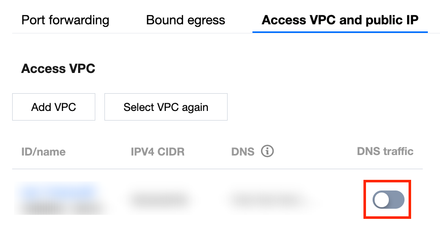 关闭开关后,系统会恢复所接入 VPC 的 DNS 解析地址,DNS 流量将恢复原先路径,不再经过 NAT 边界防火墙。