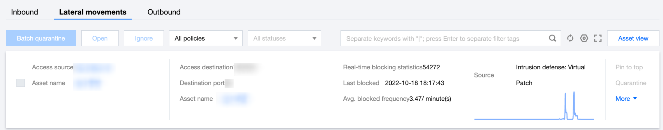 对于发起横向移动攻击的资产/IP,可以在这里查看拦截记录。