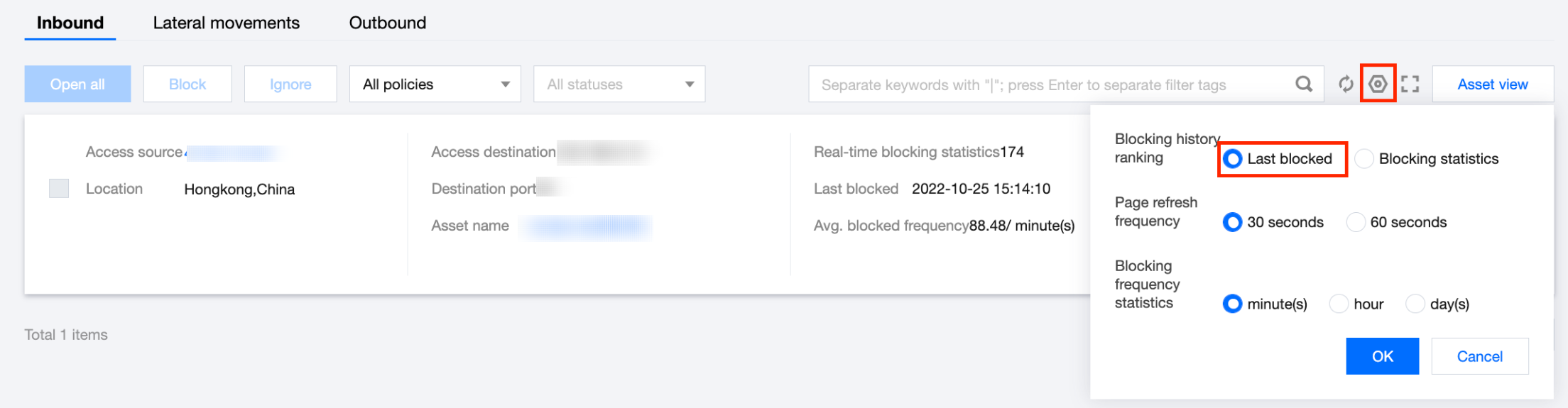 查看某个资产的拦截统计信息