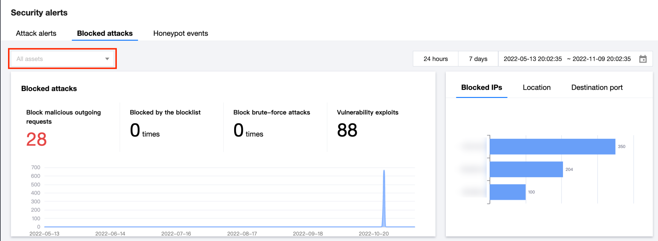 本文档将为您介绍告警中心操作指引。以下内容默认您已经登录 云防火墙控制台,在 告警中心 页面,单击攻击拦截统计,进入攻击拦截统计页面。在这里您可以查看阻断拦截趋势图和攻击拦截IP、地理位置、目的端口的天梯图,帮助您更好地分析和加固资产。