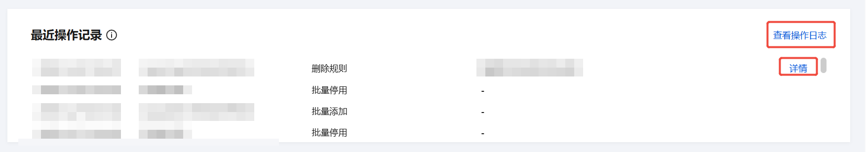 3. 在互联网边界规则页面中,可查看最近操作记录。最近操作记录展示了用户最近对规则列表进行的操作: