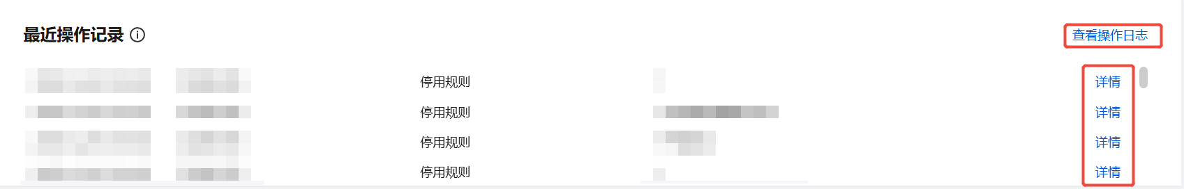 3. 在 NAT 边界规则页面中,可查看最近操作记录。最近操作记录展示了用户最近对规则列表进行的操作: