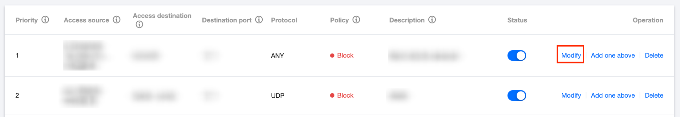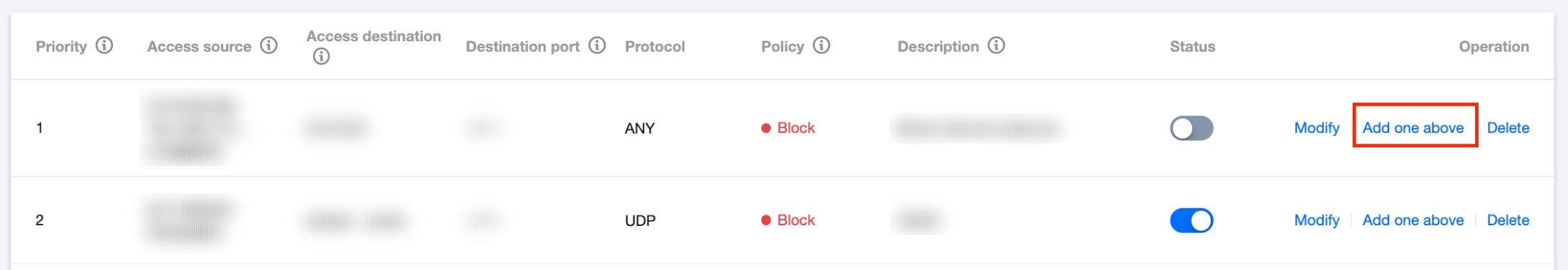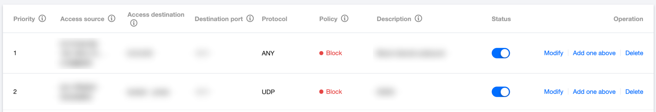阻断:拦截命中规则的流量,记录企业安全组命中日志