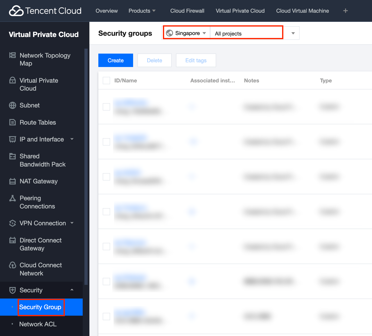 安全组规则:展示当前地域所有安全组的入站规则和出站规则,单击可查看规则详情,也可验证企业安全组是否下发成功。 5. 登录 私有网络控制台,在左侧导航中,选择安全 > 安全组,并选择所需地域和项目。