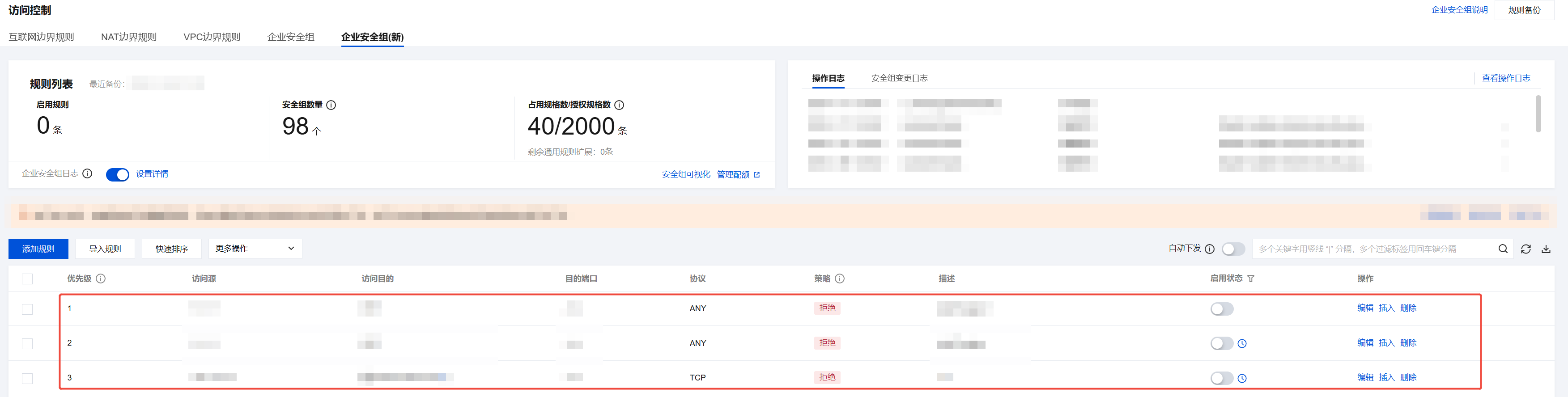 失陷主机 IP 的隔离是通过安全组来实现的,单击查看规则,可以跳转到企业安全组页面,查看详细的规则信息。