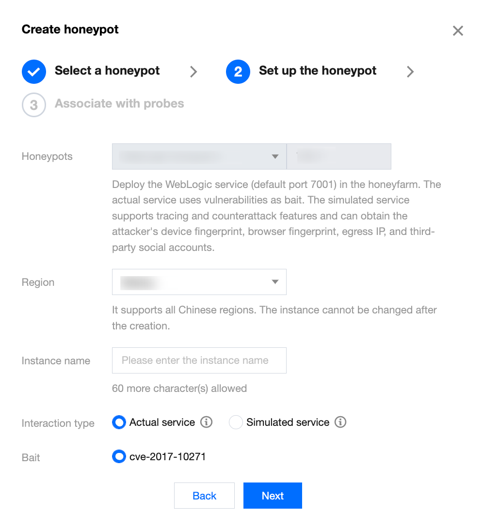 不同的蜜罐服务,所需要配置的参数有所不同,详情请参见 参数说明。 参数说明
