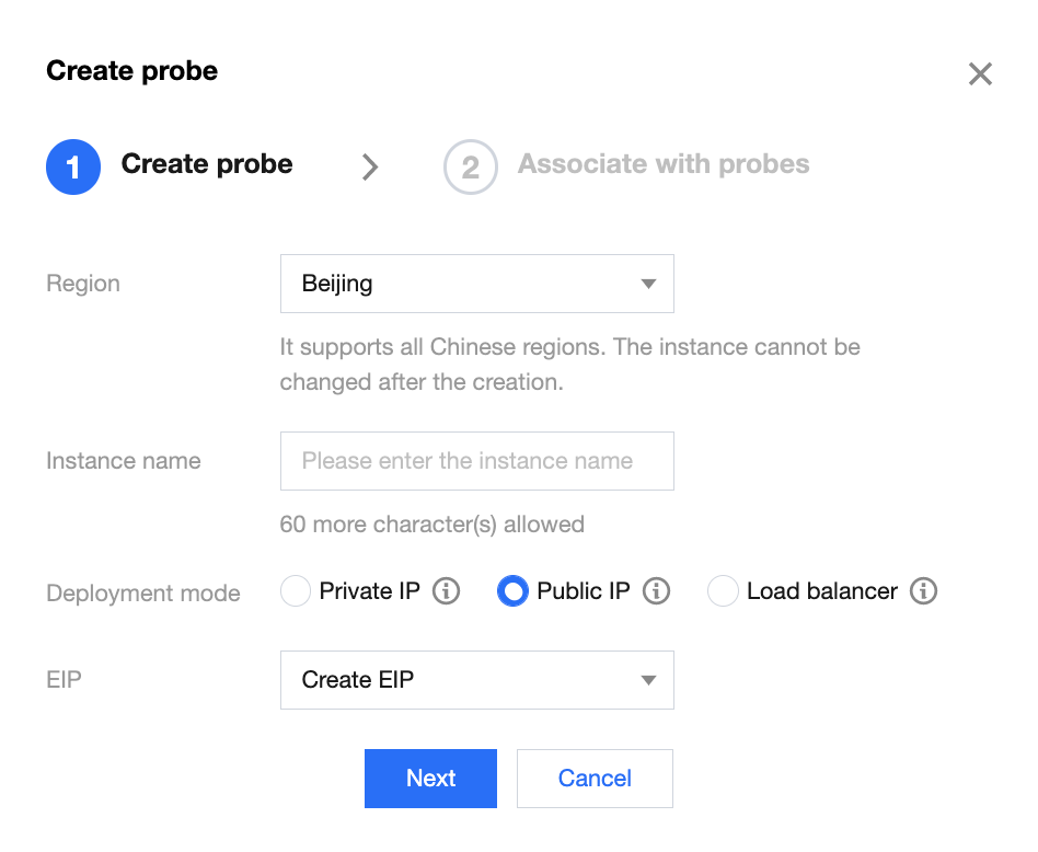 弹性 IP:当部署模式为公网 IP时,需配置该内容。选择新建弹性 IP。