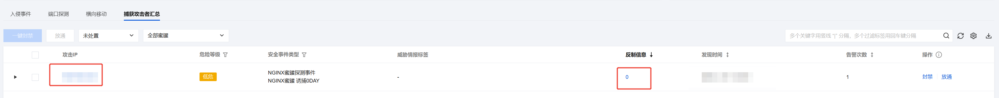 单击攻击者 IP 或反制信息栏中的数字,可查看该攻击 IP 的溯源反制信息。 快速处置欺骗信息