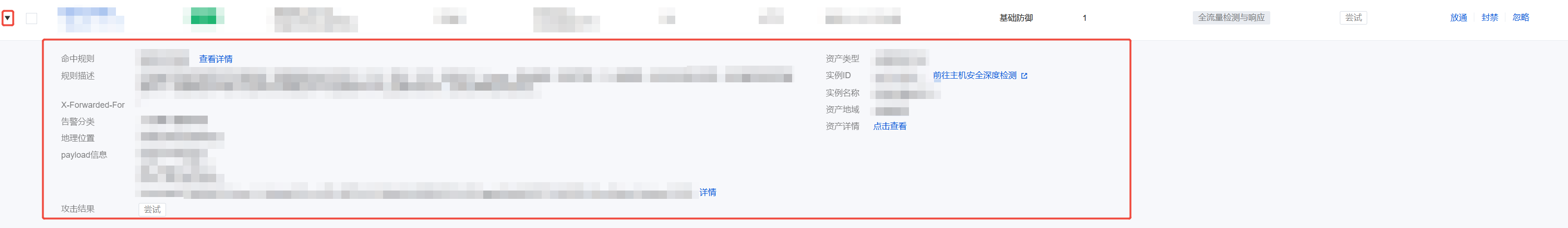资产详情:单击点击查看,跳转至资产中心,查看被攻击资产详情。