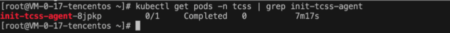 kubectl get pods -n tcss | grep init-tcss-agent。