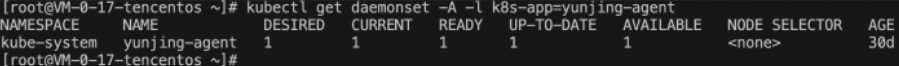 kubectl get daemonset -A -l k8s-app=yunjing-agent。
