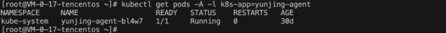 kubectl get pods -A -l k8s-app=yunjing-agent。