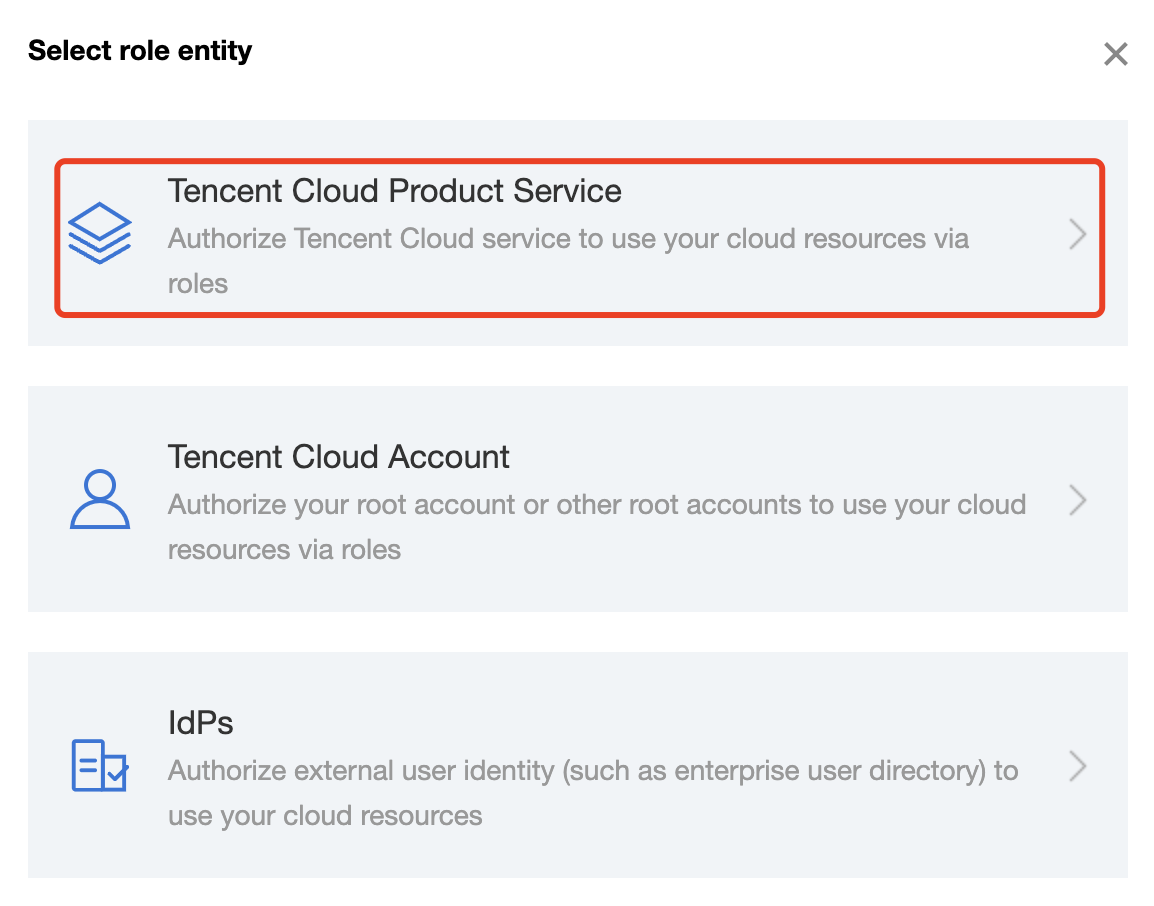 2. 在角色页面,单击新建角色,选择腾讯云产品服务。