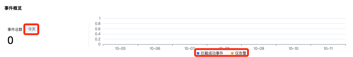 在 镜像拦截事件 > 事件概览中,将对每日镜像启动拦截事件和仅告警的事件进行统计,展示近7日两类事件的趋势图和当前的事件总数。 说明: