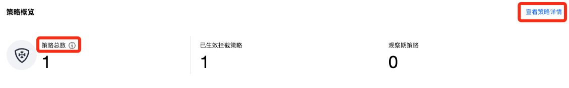 命中策略:展示已生效拦截策略或观察期策略的名称、类型、启动状态、策略状态、开始拦截时间、策略描述和策略拦截内容。用户可单击策略名称/策略类型旁的详情,查看此条事件关联的策略详情。