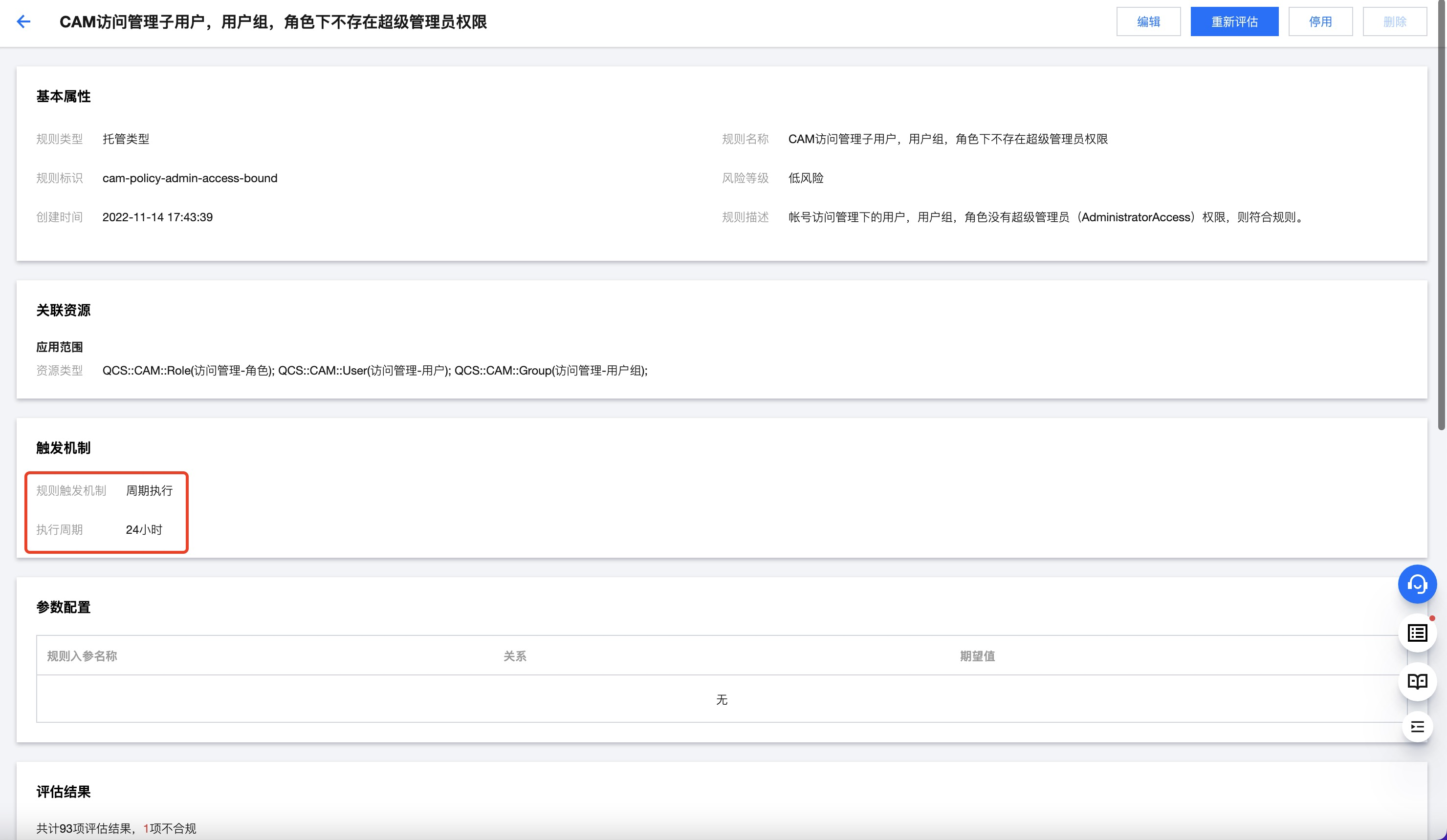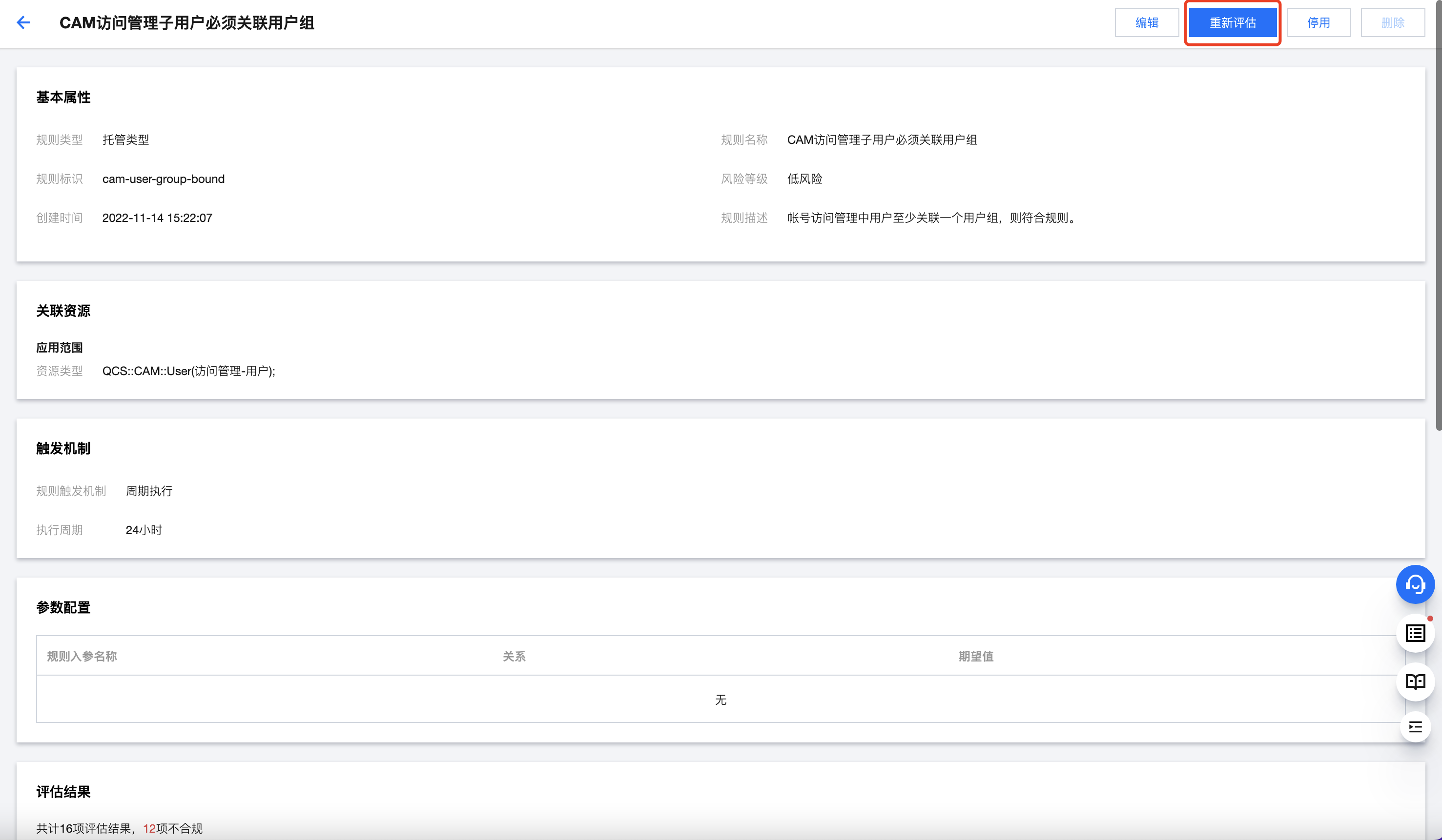 配置审计中已启用的规则,可以由系统自动触发,或手动触发执行。已停用的规则,需重新