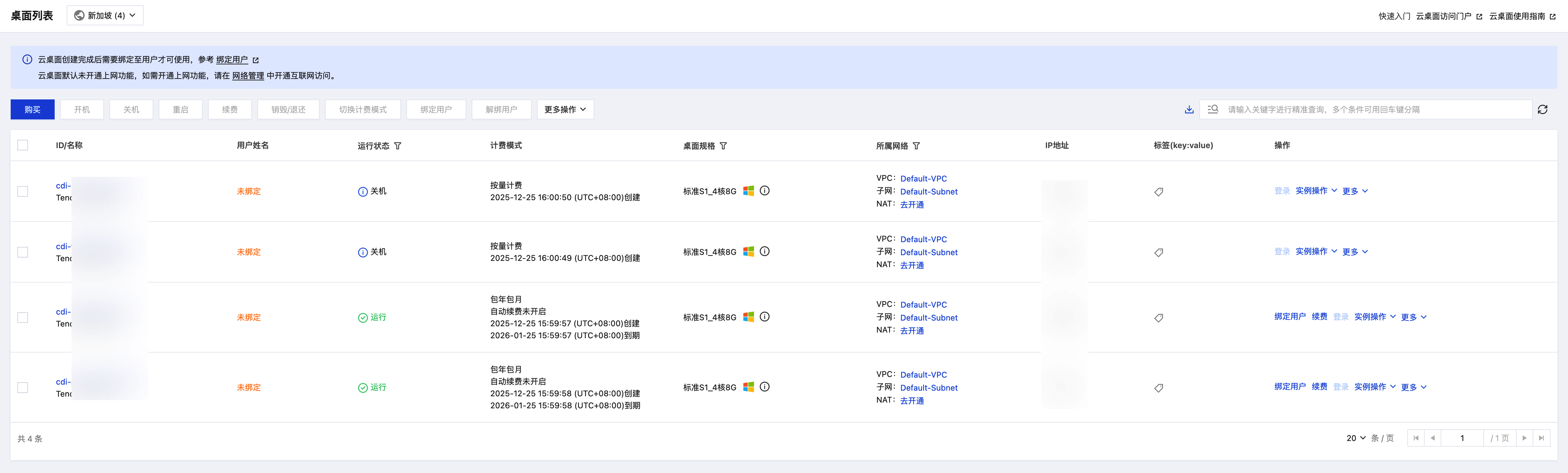 在云桌面控制台开通
